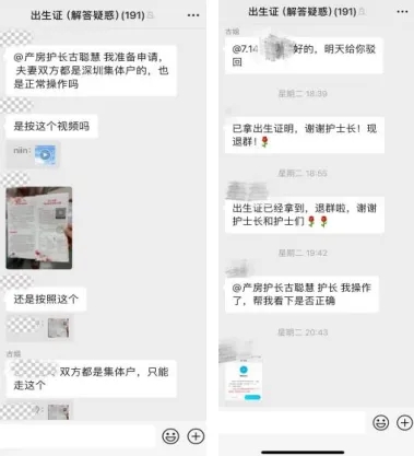 2.专属出生证办理群,线上回答问题。