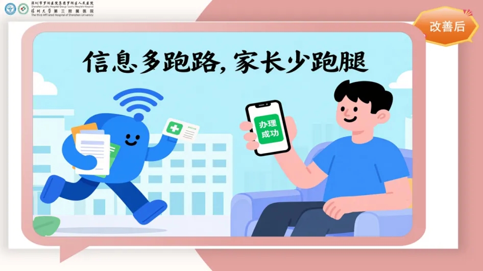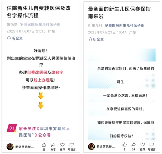 针对新生儿家庭最关心的出生证件办理、医保报销等事务,医院创新推出出生事务 “零次跑” 服务,以 “二阶式” 指导打通服务堵点。