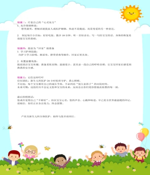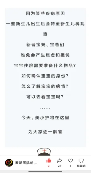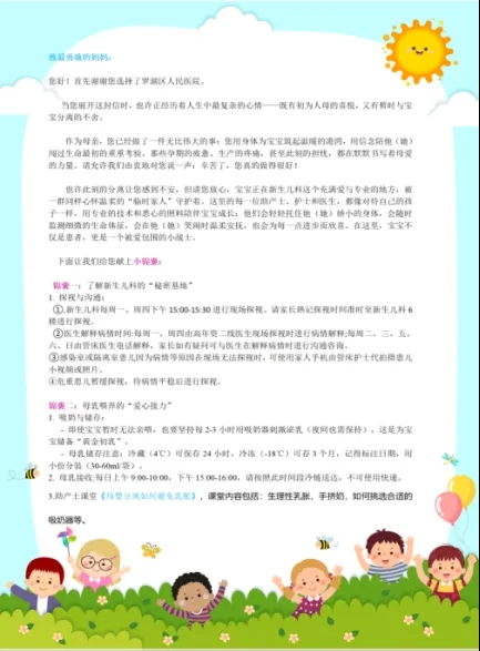 为让母婴分离的家庭第一时间感受到关怀,医院推出 “安心启程” 计划,明确执行时间为新生儿转科确认后的 2 小时内。医护人员将通过 “爱心告知书”的形式,向家长详细说明转科原因、新生儿后续照护流程及沟通渠道等。这份 “贴心锦囊”,及时、透明地传递了信息,缓解了家长的担忧与不安。