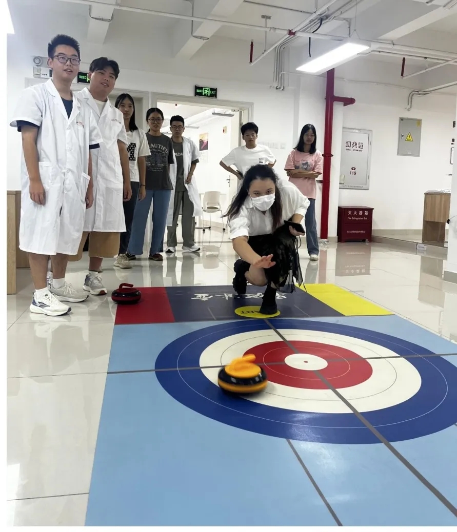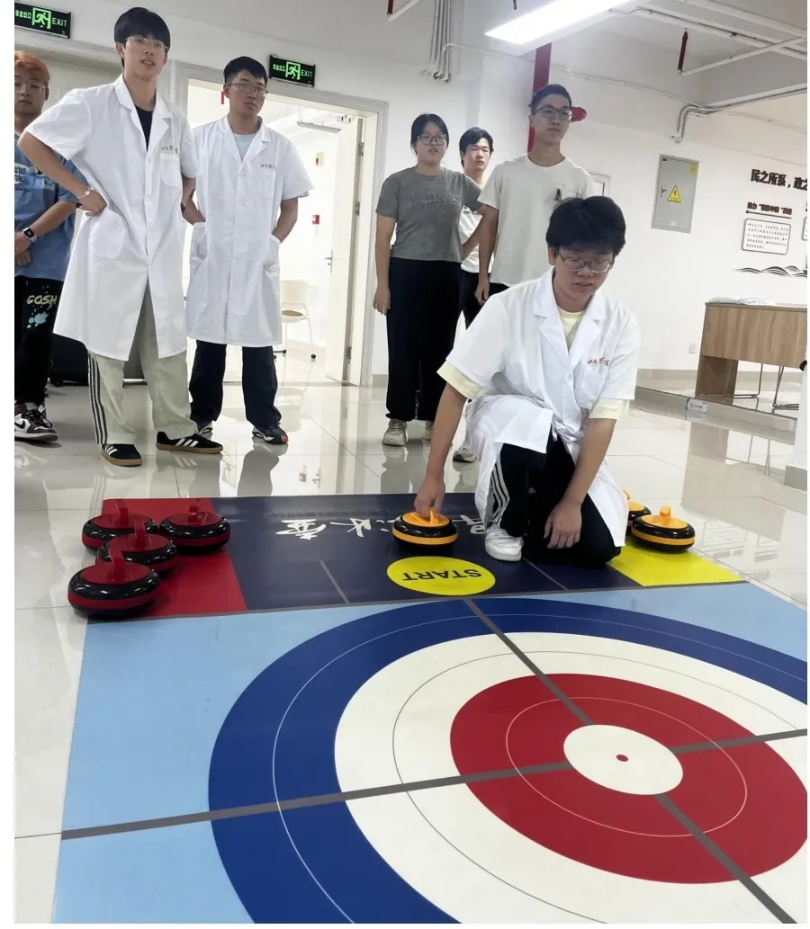 为促进新生之间的交流,缓解开学紧张情绪,科研教学部还特别组织了旱地冰壶体验活动。同学们在轻松愉快的氛围中互动合作,不仅放松了心情,也增强了集体凝聚力。