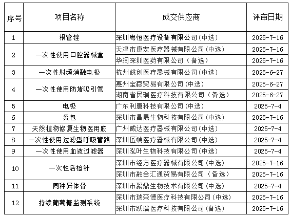 深圳市罗湖区人民医院对以下采购项目已完成自行采购,成交结果公示:项目编号:LHYY-HC-202503001