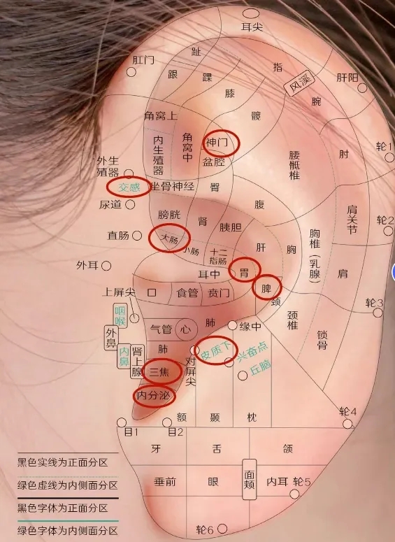双手食指、中指按压穴位并做环形揉动,每次5-10分钟,缓解腹胀。